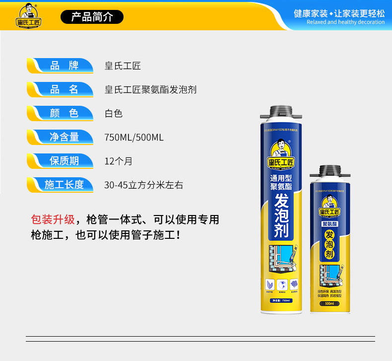 皇氏工匠 槍管一體式發(fā)泡劑填縫劑900g
