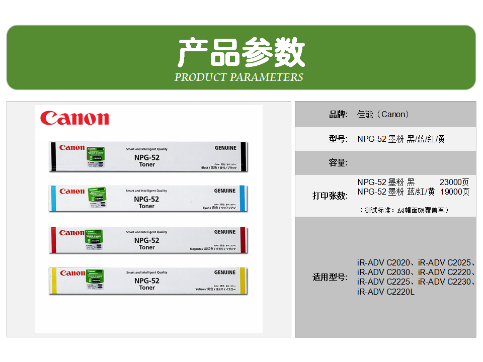 佳能(Canon) NPG-52 TONER 墨粉 (適用C2020/ADV C2025 )(BK黑色)