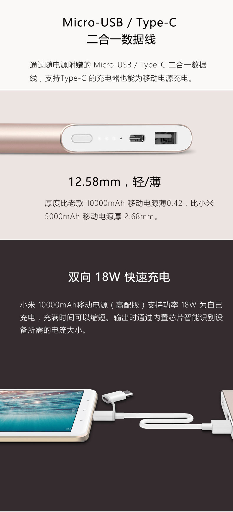 小米(MI) 小米移動電源10000mAH高配版 (灰色)