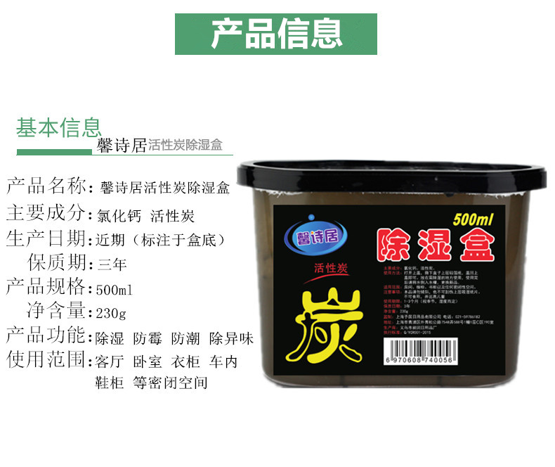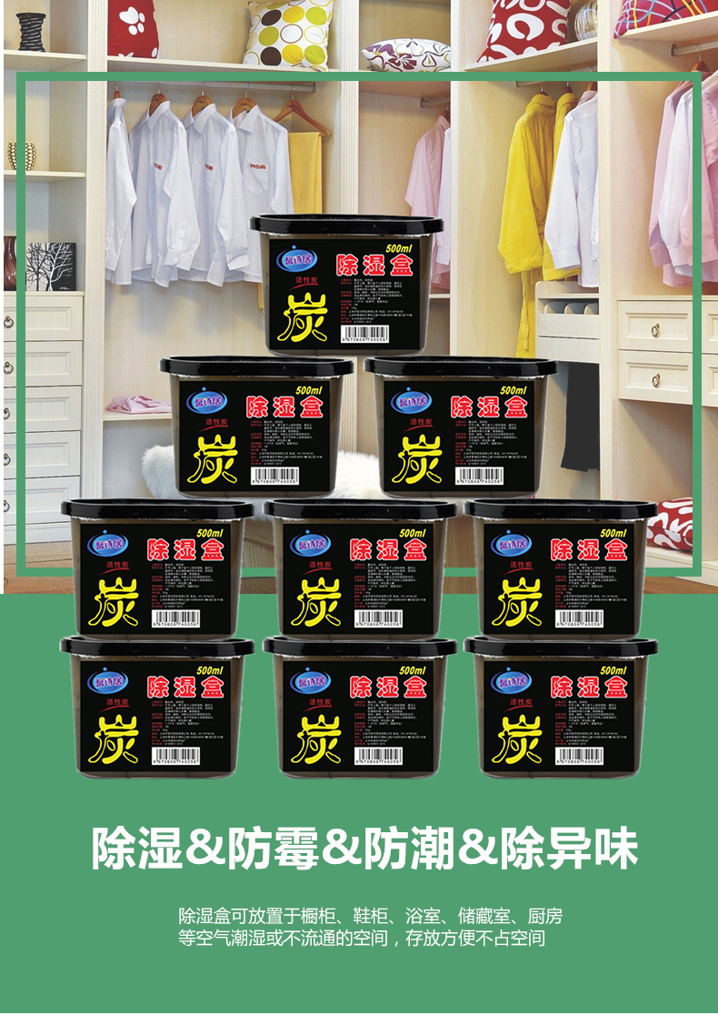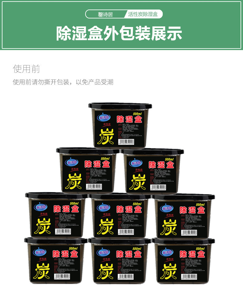 馨詩居 活性炭除濕盒衣柜室內(nèi)無味吸濕袋干燥劑防潮霉除濕劑9盒裝