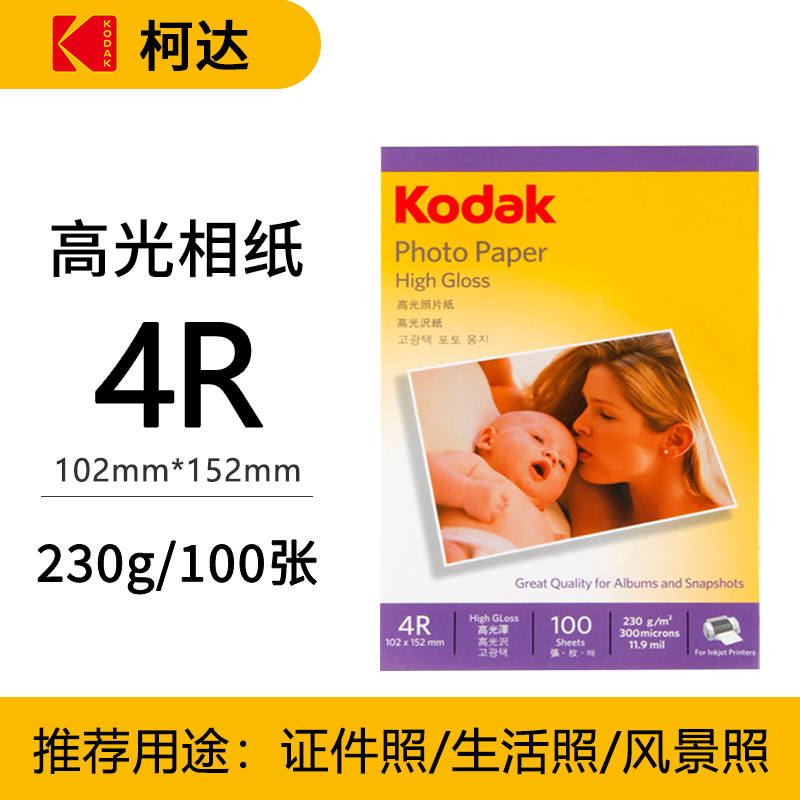 柯達(dá)(Kodak) 4R/6英寸 230g高光照片紙相片紙100張/包 4027-316
