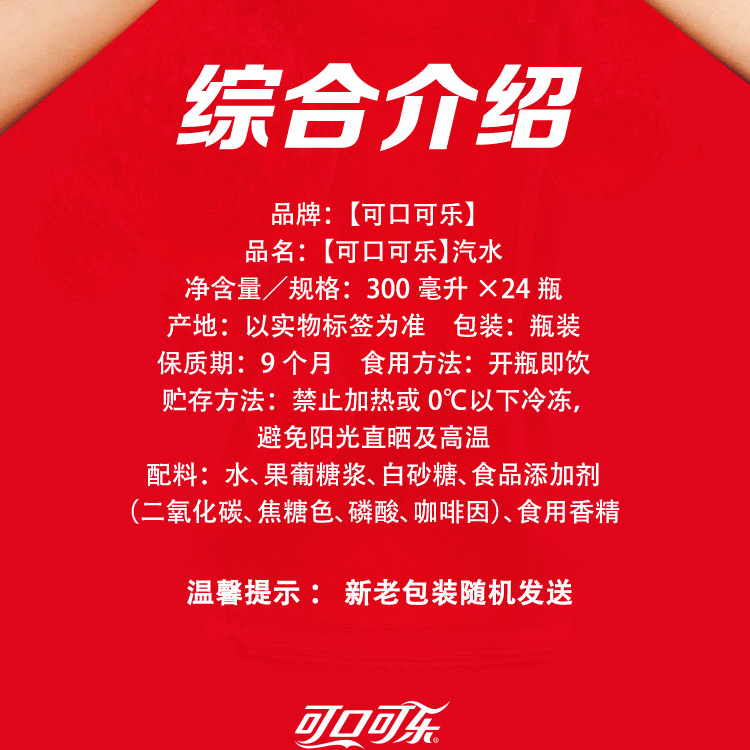 可口可樂(Coca-Cola) 汽水飲料 碳酸飲料 300ML*24瓶整箱裝