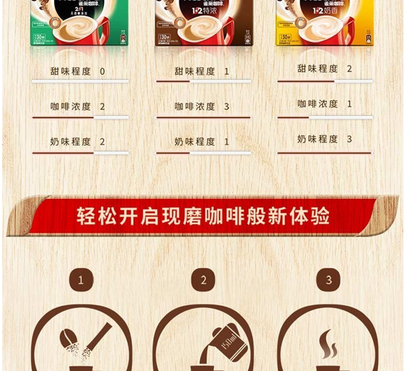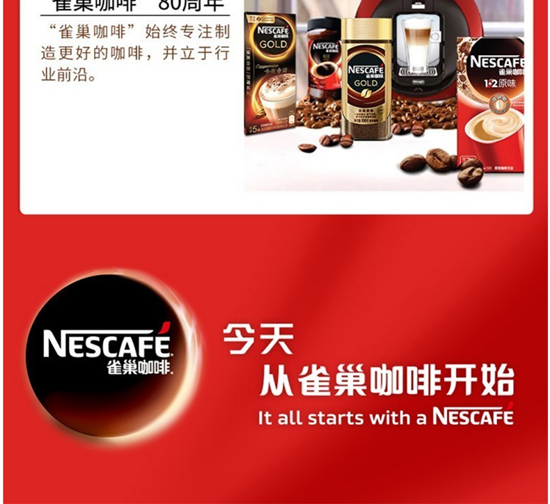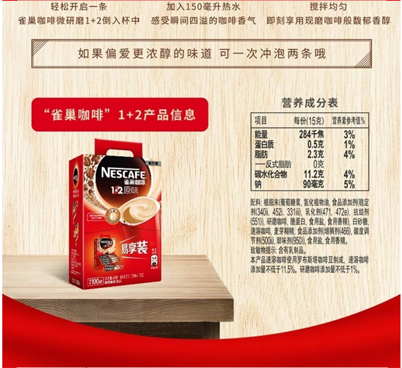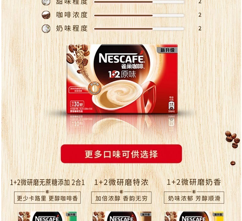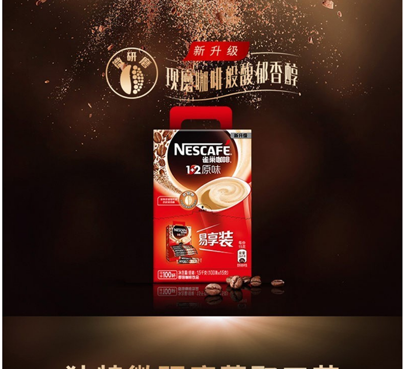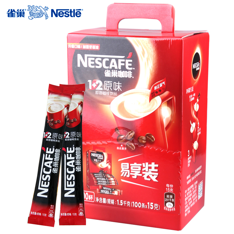 雀巢(Nestle) 咖啡1+2微研磨原味三合一速溶咖啡粉100條*15g