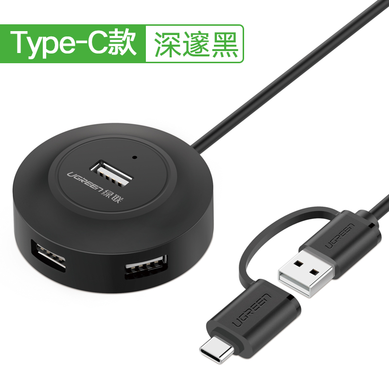 綠聯(lián)(UGREEN) CR106 usb擴(kuò)展器轉(zhuǎn)換接頭多接口type-c通用蘋果筆記本電腦usb拓展 U盤一拖四hub集線器usb分線器(深邃黑+Type-C手機(jī)轉(zhuǎn)接頭(Type-C款)1m)