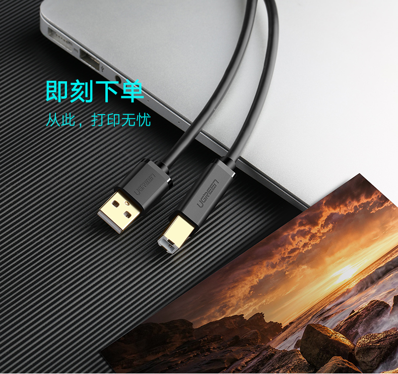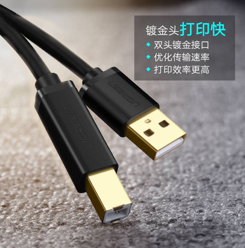 綠聯(lián)(UGREEN) US135 usb打印線通用佳能惠普愛普生連接線電腦筆記本加長(zhǎng)3米延長(zhǎng)線(黑色2m)