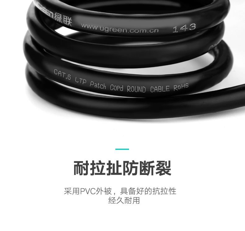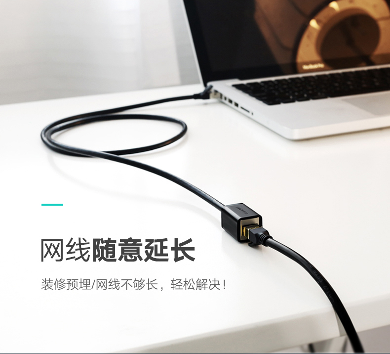 綠聯(lián)(UGREEN) 網(wǎng)線延長線rj45寬帶6類純銅5公對母電腦連接千兆網(wǎng)絡(luò)接頭加長(黑色0.5m)
