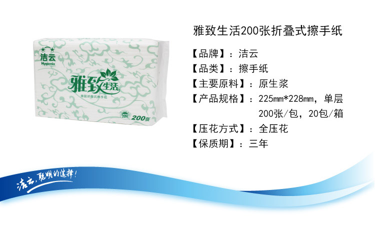 潔云 156303商務(wù)36GSM雅致生活200張三折擦手紙20包