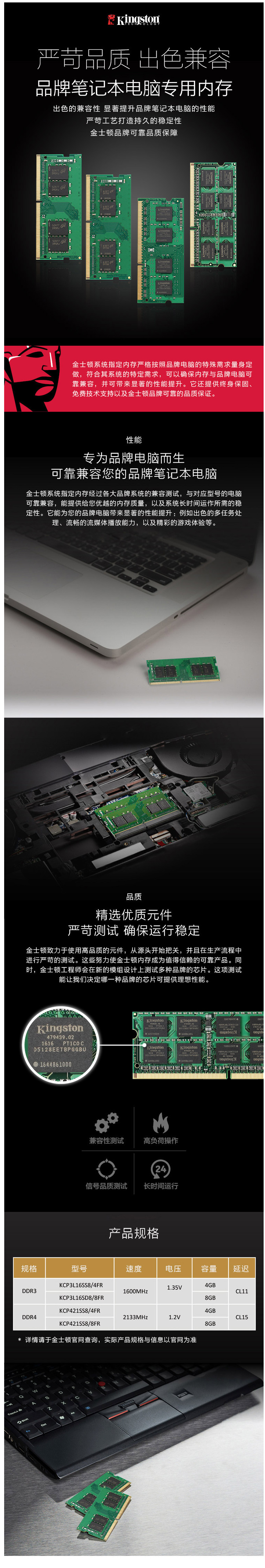 金士頓(Kingston) DDR3L 1600 8G 筆記本內(nèi)存條