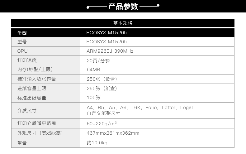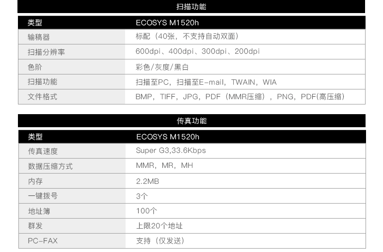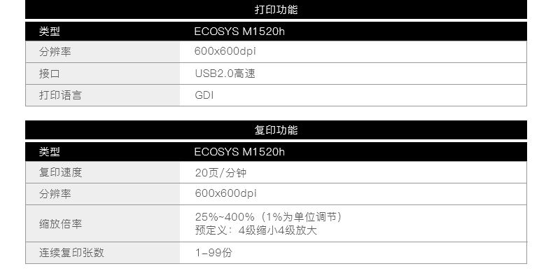 京瓷(KYOCERA) M1520h 多功能一體機(jī) (打印 復(fù)印 掃描 傳真)