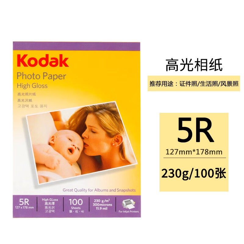 柯達(Kodak) 5R/7寸 230g高光照片紙相片紙 100張/包 5740-320