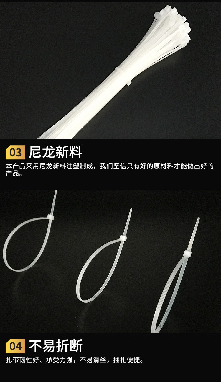 永達(dá) 4*200mm(實(shí)際尺寸3.5mm)自鎖式尼龍塑料扎帶500條/包
