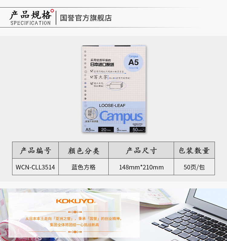 國譽(yù)(KOKUYO) WCN-CLL3514 方格活頁本A5/20孔 50頁