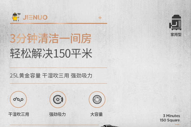 杰諾 1600W干濕吹三用小型桶式吸塵器JN603 25升