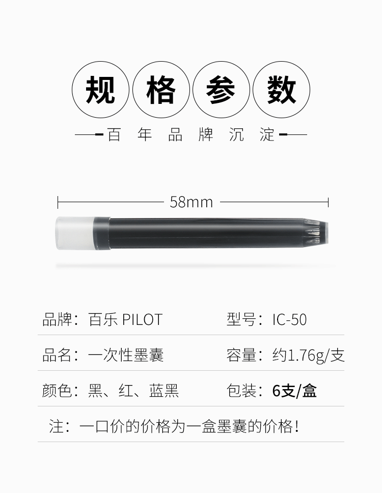 百樂(PILOT) IC-50一次性墨囊黑色6支/盒