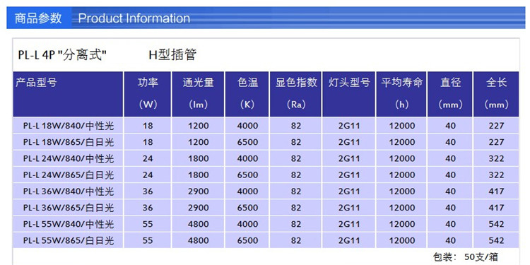 飛利浦(PHILIPS) PL-L4P 55W/865白光長度542mm