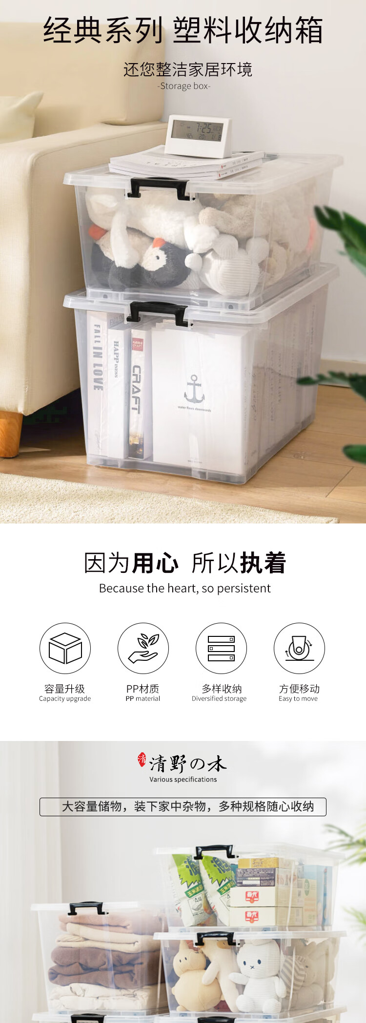 清野の木 高透塑料收納箱 56L三個(gè)裝