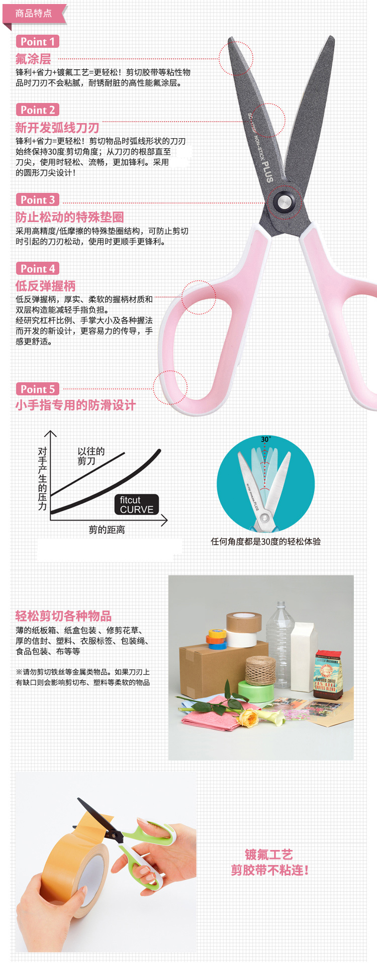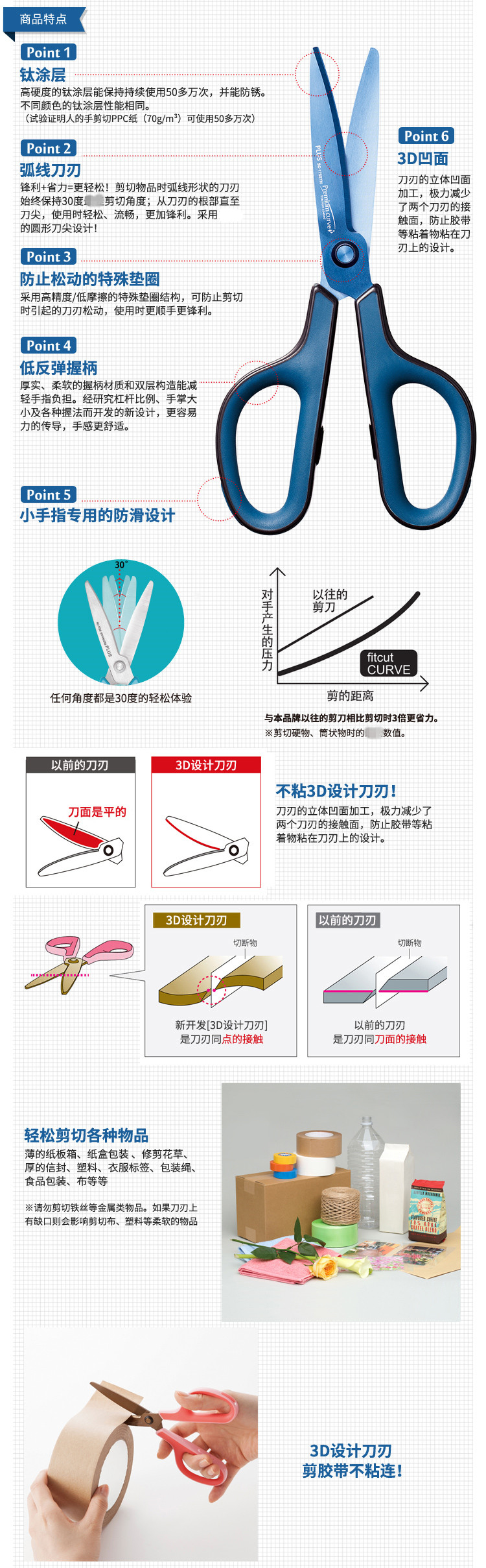 普樂士(PLUS) 剪刀SC-175ST174mm刀刃65mm鍍鈦