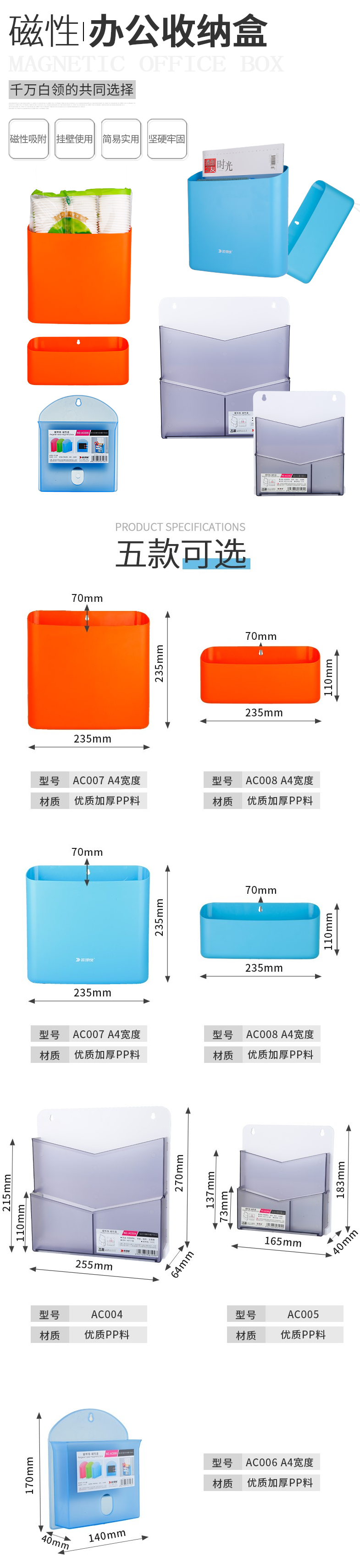 裝得快(RBD) AC007 磁性文件盒掛件資料盒A4磁性盒 淺藍色