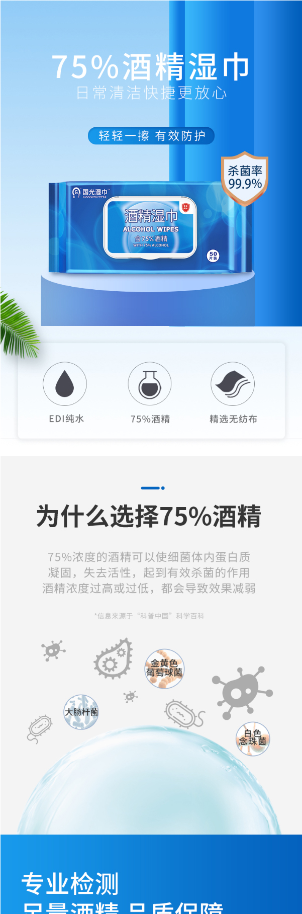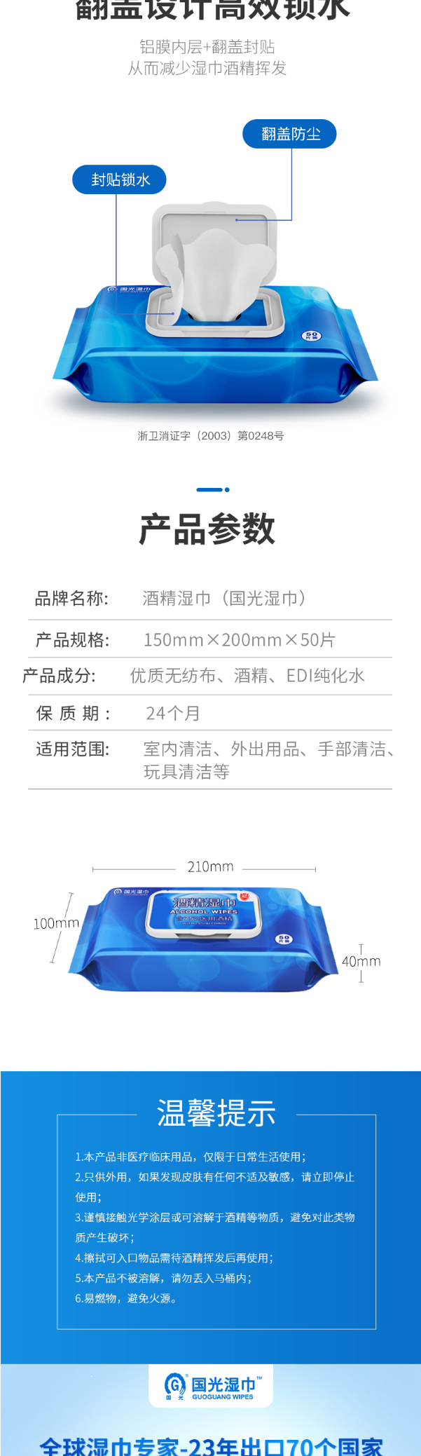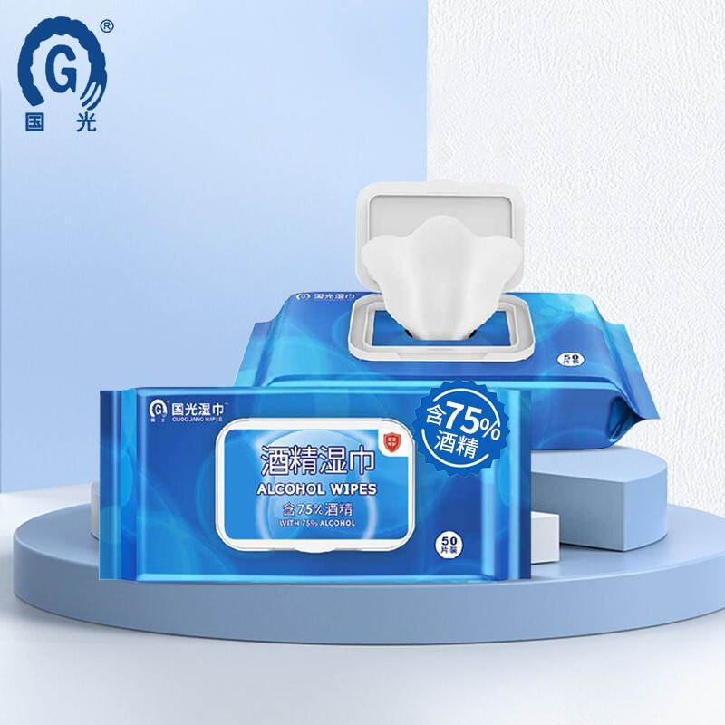 國(guó)光 酒精濕巾含75度酒精一次性殺菌消毒 50片裝 24包/箱