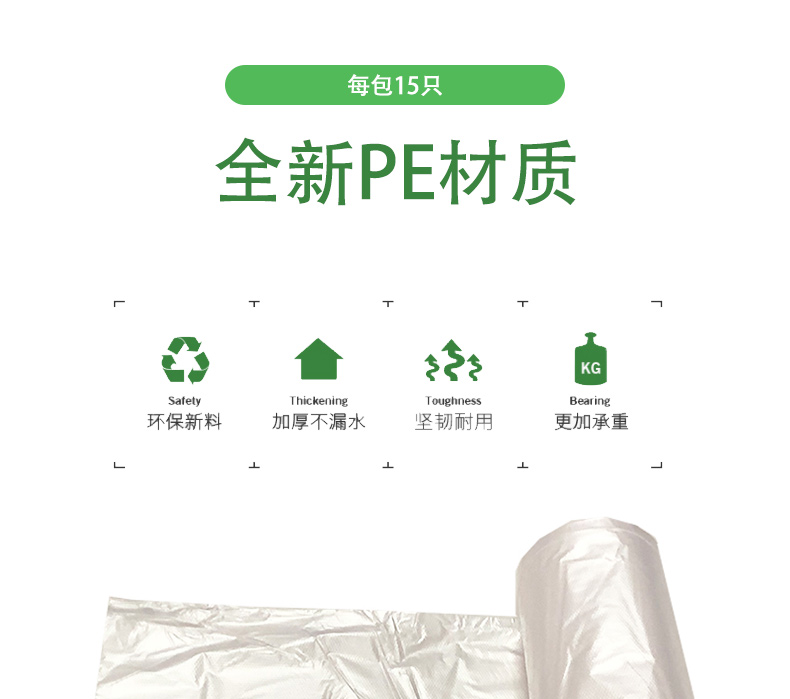 聯(lián)夏 60*80雙面垃圾袋白色2.1絲 (15只/卷)100卷/箱