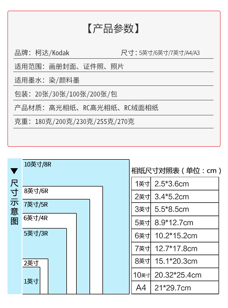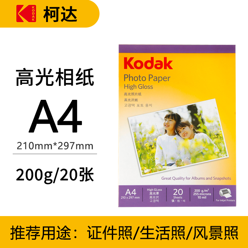 柯達(Kodak) A4 200g高光照片紙相片紙 20張/包 5740-333