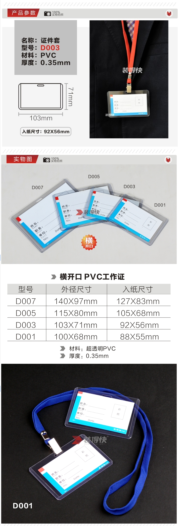 裝得快 D001 硬膠橫式證件卡套100*68mm 10個/包