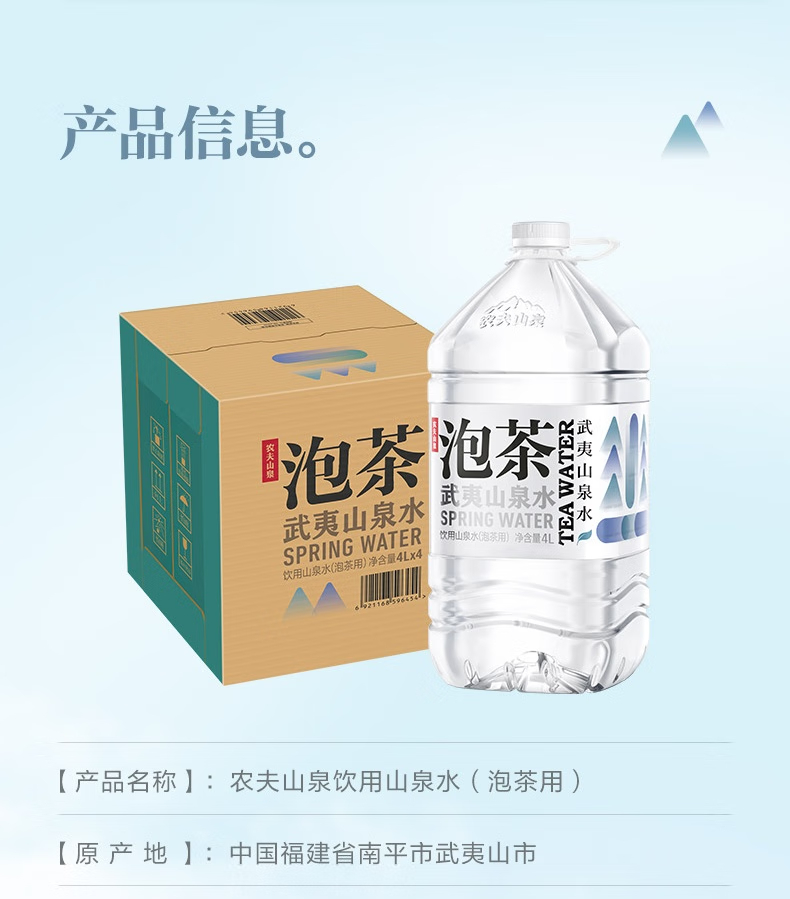 農(nóng)夫山泉(NONGFU SPRING) 飲用山泉水天然水(武夷山泡茶水)4L*4桶