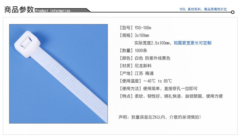 永達 3*100mm(實際寬度1.8mm)自鎖式尼龍塑料扎帶1000條/包