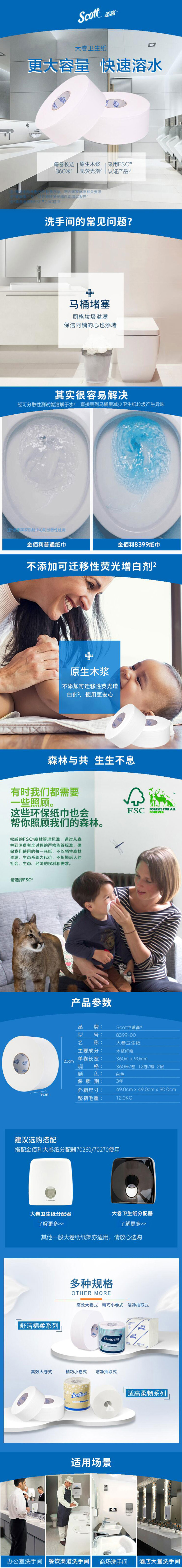 金佰利(JACKSON) 8399-00 Scott適高 雙層大卷衛(wèi)生紙360米(割線) FSC MIX360 米 x 90 毫米360米/卷 x 12卷 (20cm)