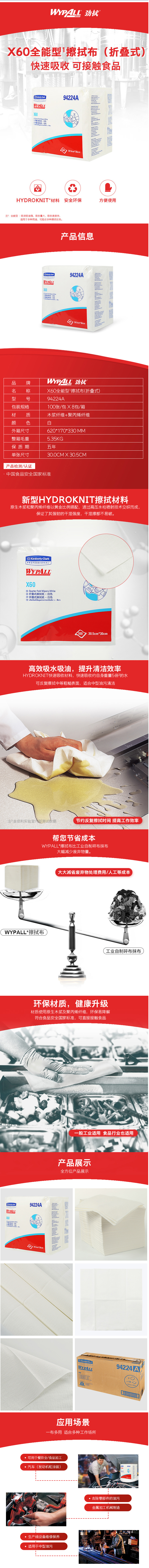 金佰利(JACKSON) 94224A WYPALL勁拭X60 通用型擦拭布(折疊式)300 x 305 毫米100張/包 x 8包