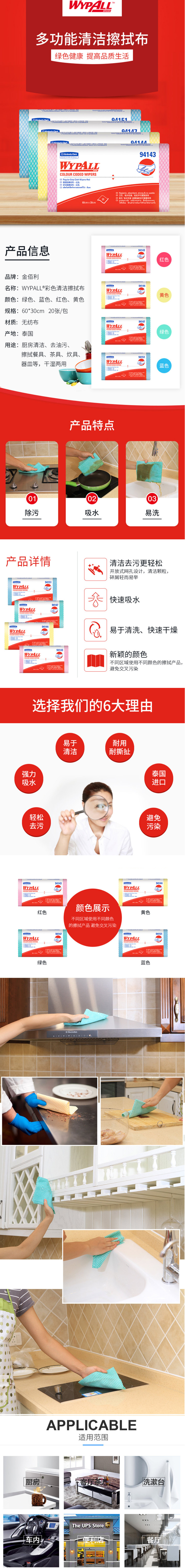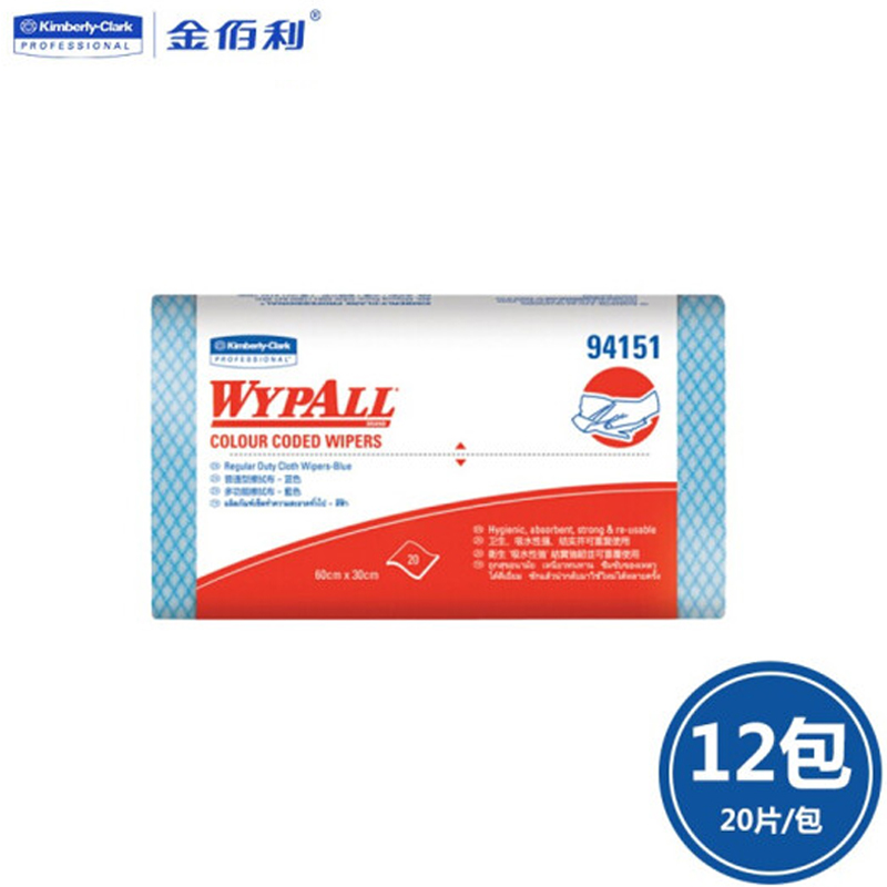 金佰利(JACKSON) 94151 WYPALL勁拭 標(biāo)準(zhǔn)型彩色清潔擦拭布(藍(lán)色)600 x 300 毫米 20片/包 x 12包