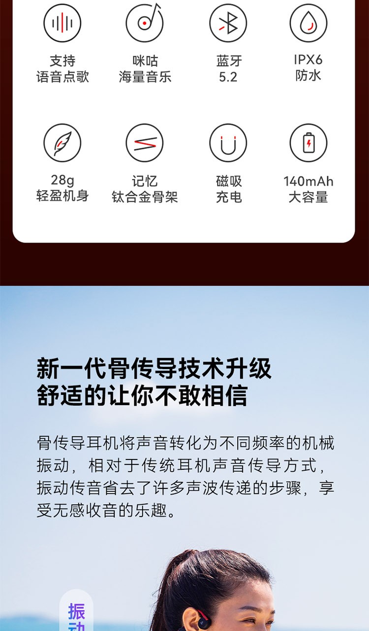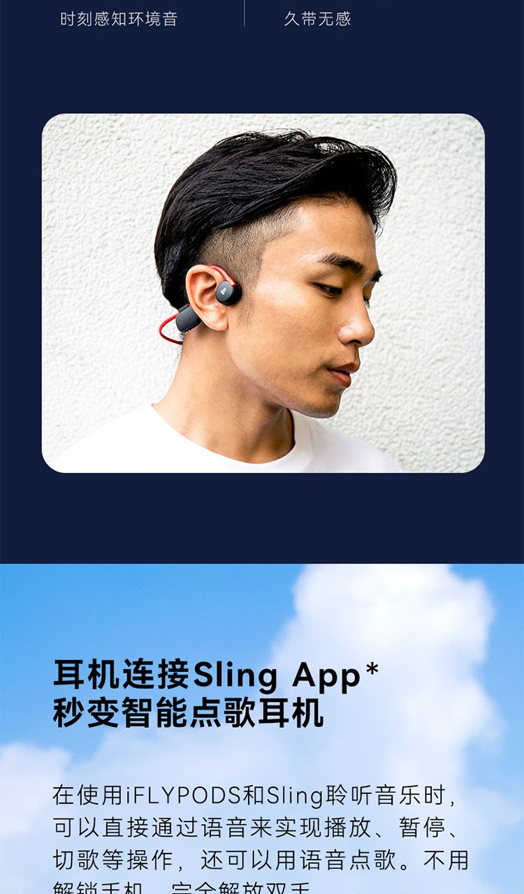 科大訊飛 訊飛智能骨傳導(dǎo)點(diǎn)歌耳機(jī)掛耳式運(yùn)動(dòng)無(wú)線耳機(jī)骨傳導(dǎo)跑步騎行語(yǔ)音點(diǎn)歌 紅色