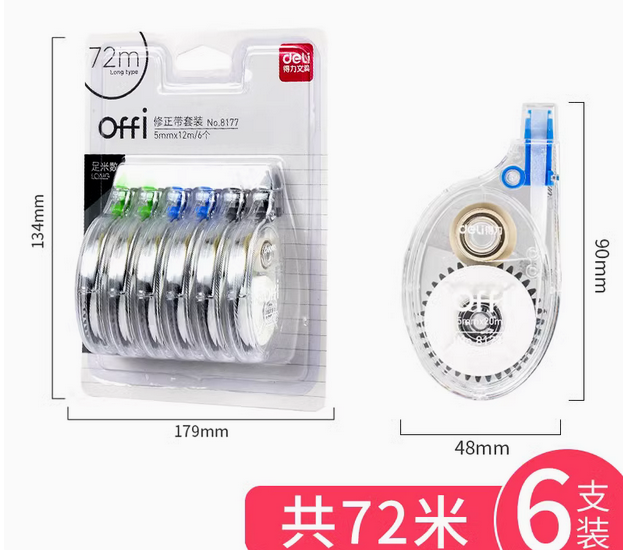 得力(deli) 12米/個(gè) 學(xué)生修正帶 順滑不斷帶改正帶 8177(6支裝72米)