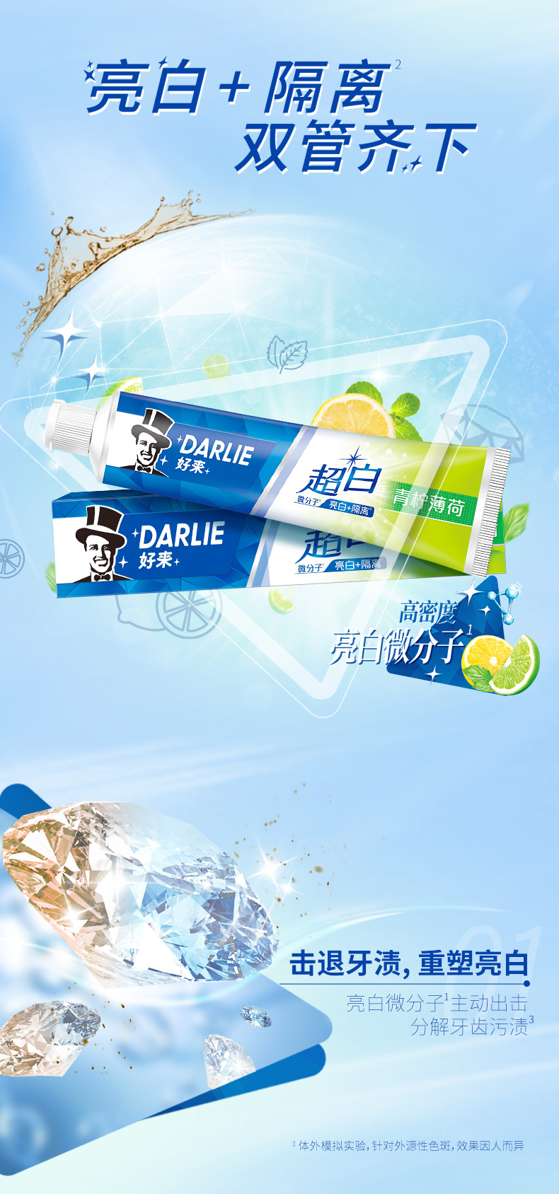 黑人(DARLIE) 牙膏超白檸薄荷中國90G