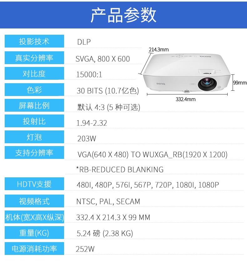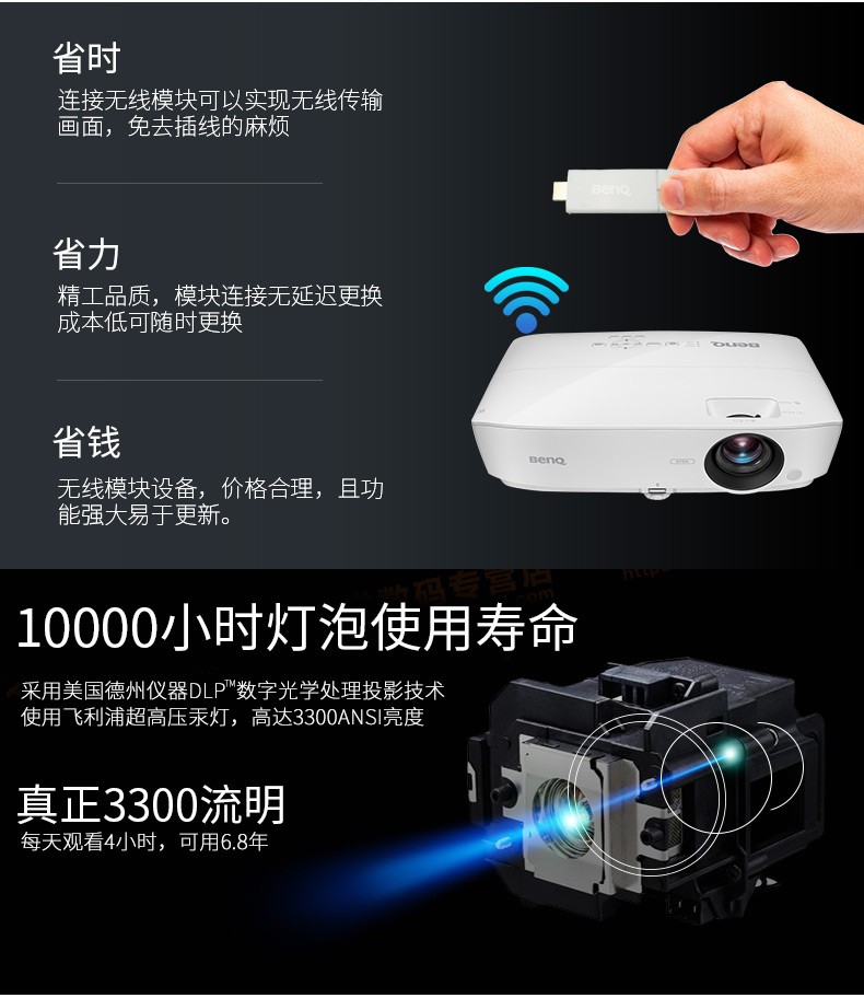 明基(BenQ) MW529 投影儀 投影機(jī)辦公(高清寬屏 3300流明 白天直投 中大型會(huì)議室)