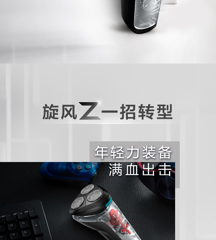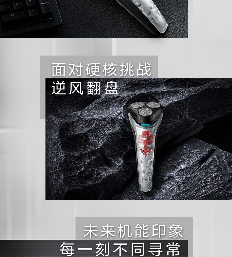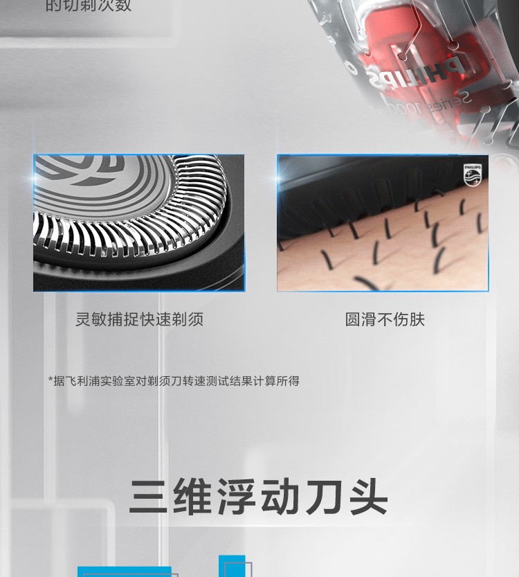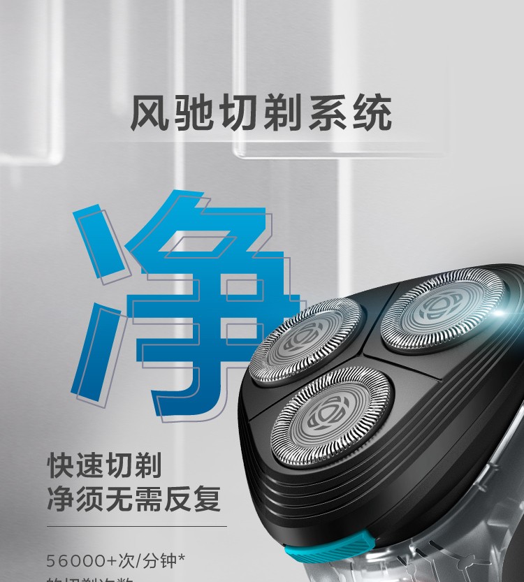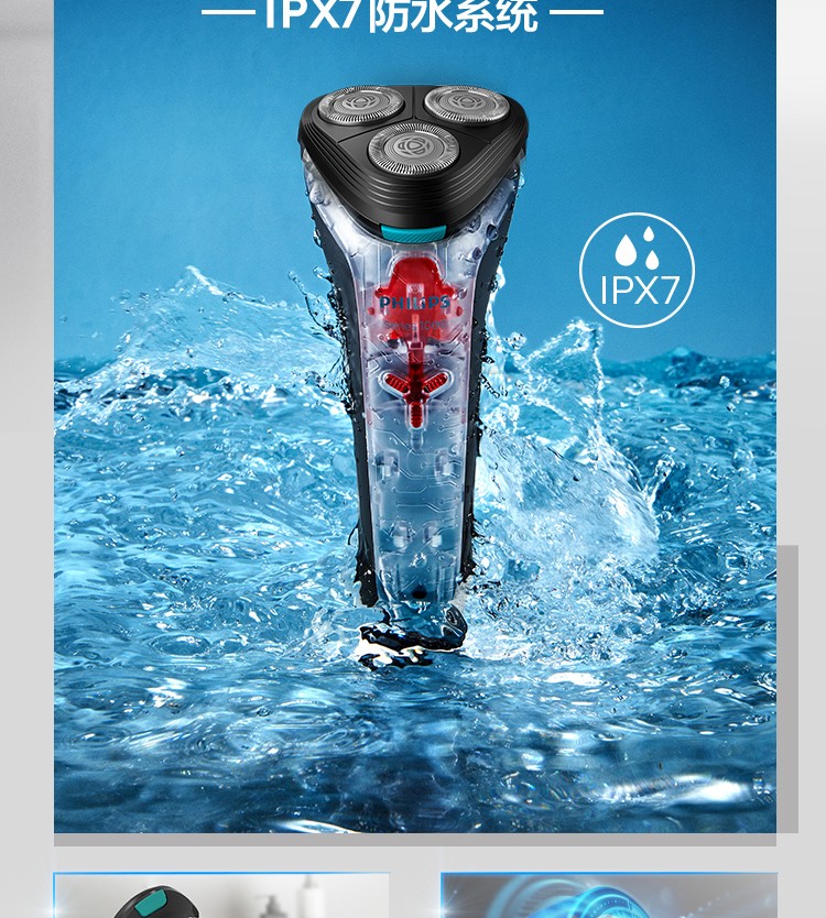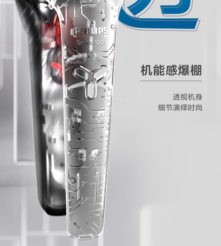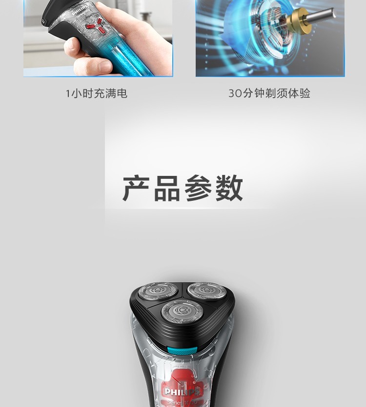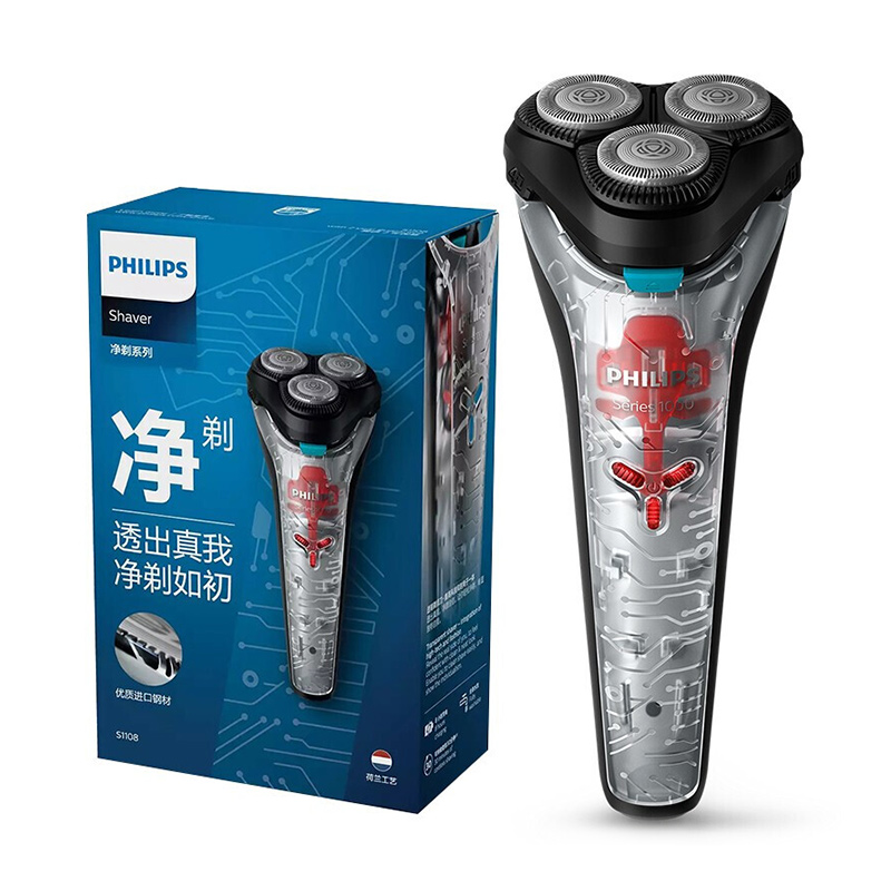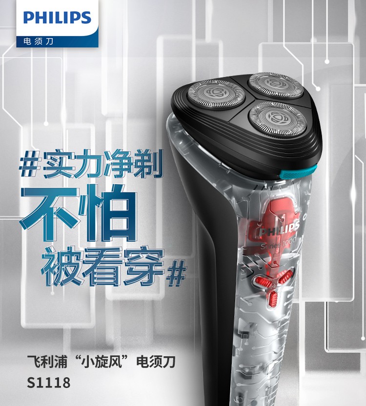 飛利浦(PHILIPS) S1118/02 電動剃須刀男士刮胡刀剃胡刀透明機身進口三刀頭干濕雙剃 全身水洗 透明機身