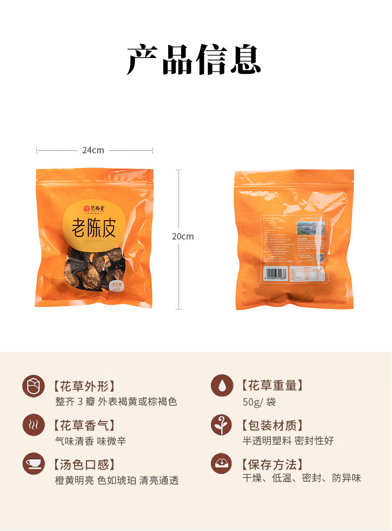 藝福堂 養(yǎng)生茶 新會(huì)橘皮 2袋/組合 (老陳皮養(yǎng)生茶50g)