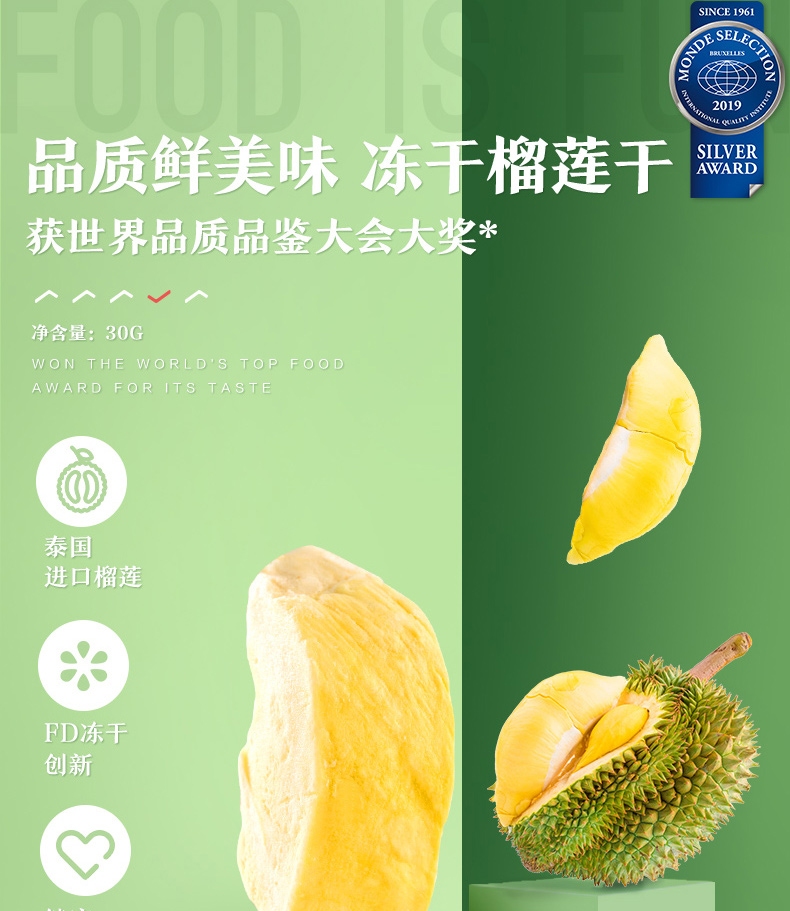良品鋪?zhàn)?凍干榴蓮干 30g