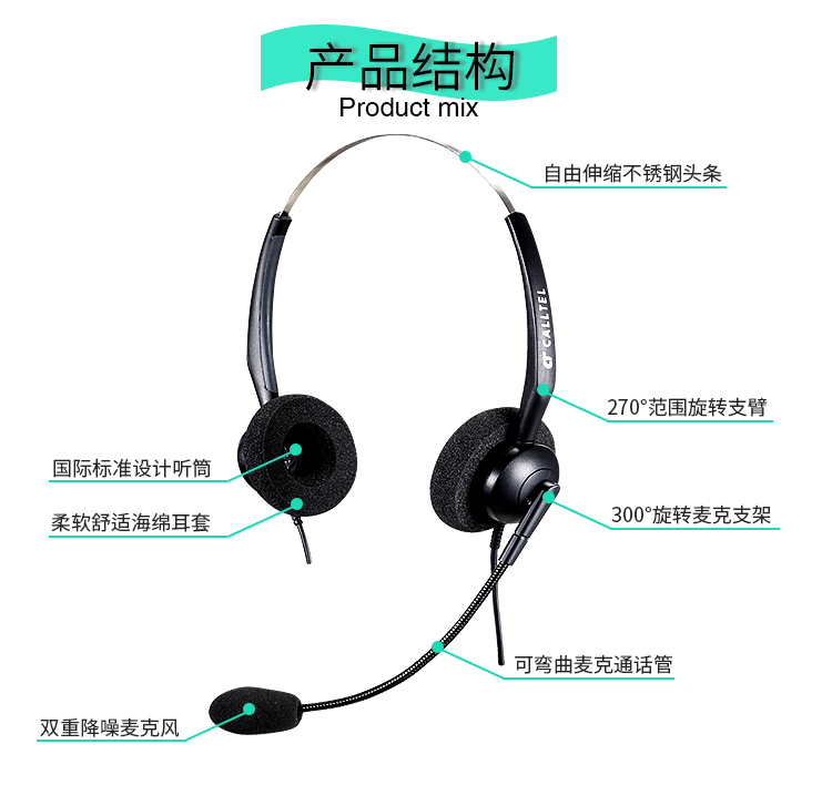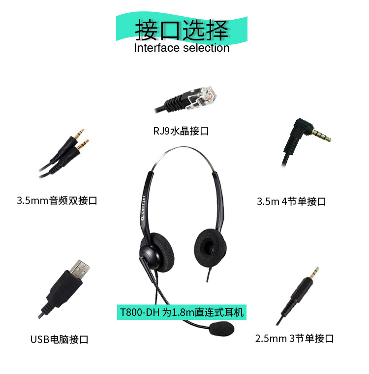 科特爾得龍(CALLTEL) T800-DH頭戴式話務(wù)耳機(jī)/客服耳麥/呼叫中心辦公/直連雙耳/3.5mm單插(適用手機(jī)/單孔電腦)