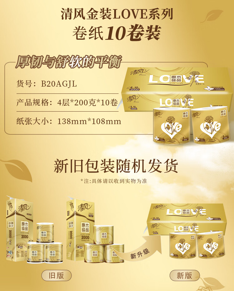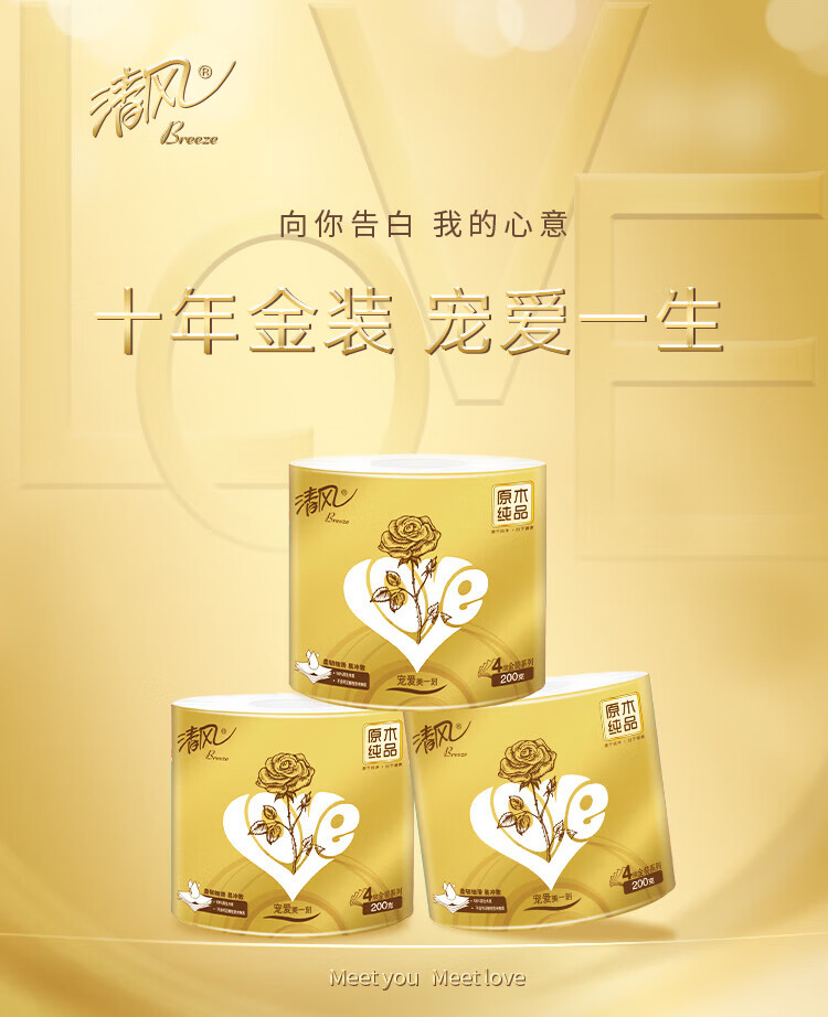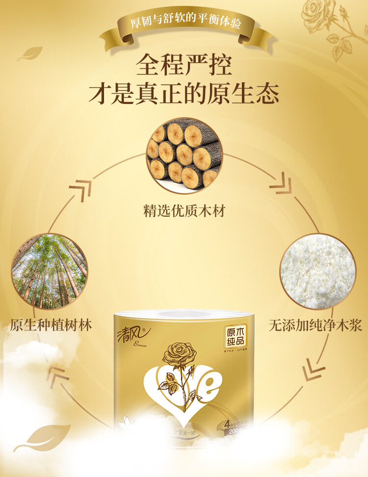 清風(APP) 原木金裝4層200克/卷*10*6卷筒衛(wèi)生紙(B20AGJL)