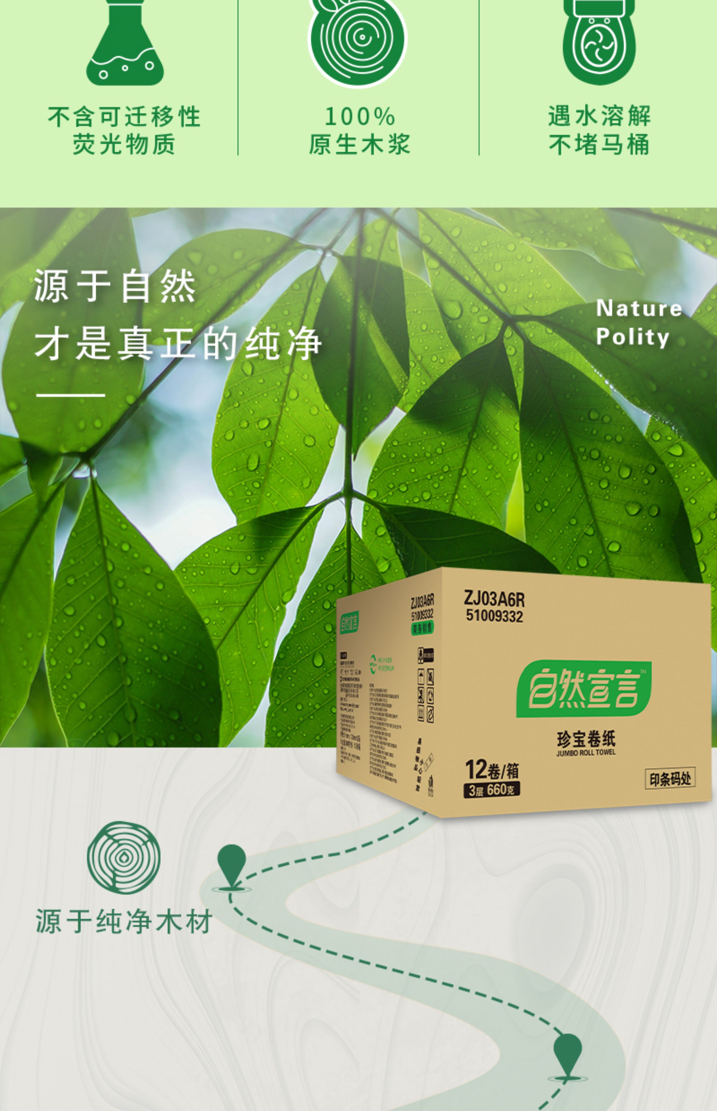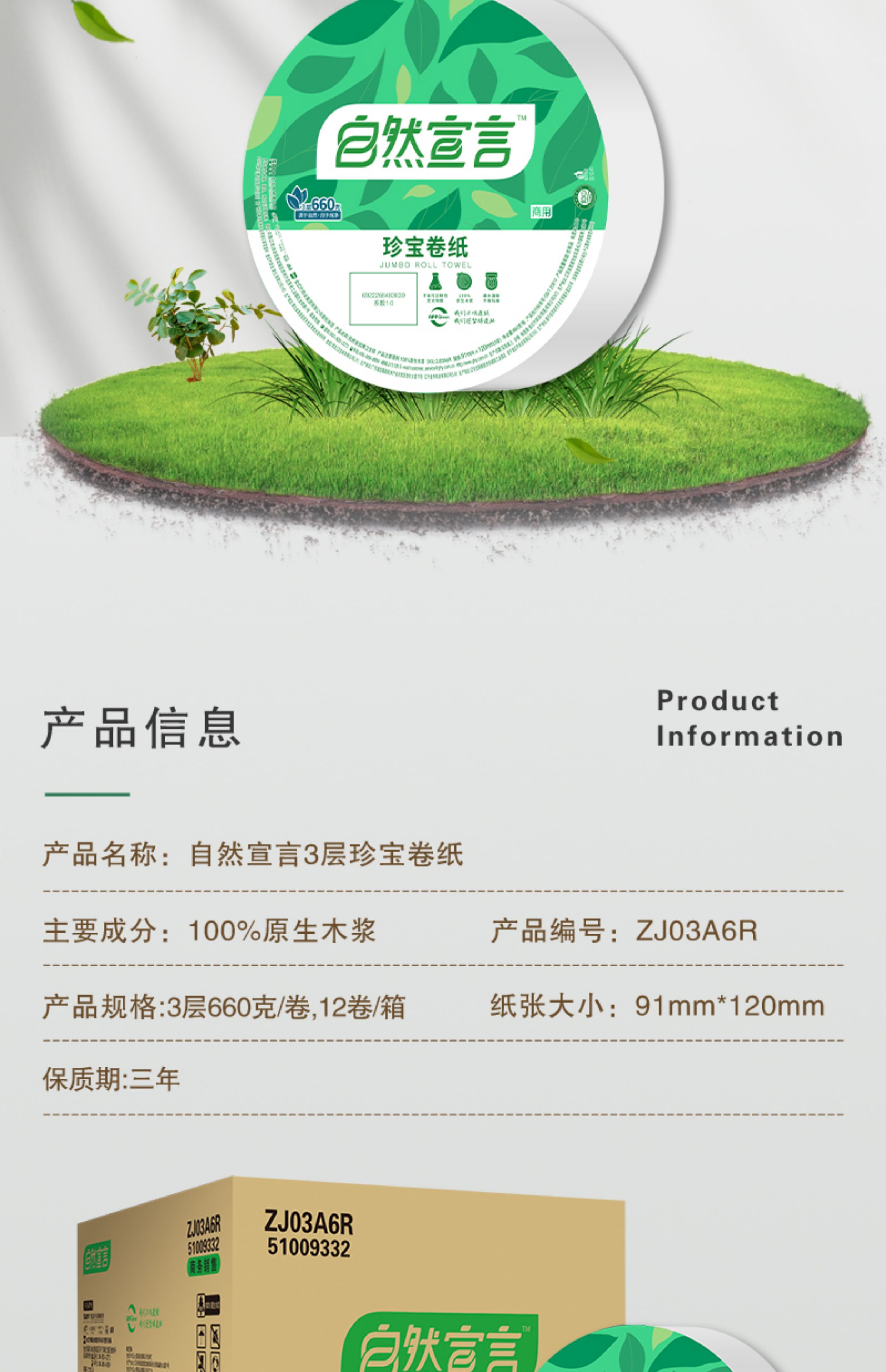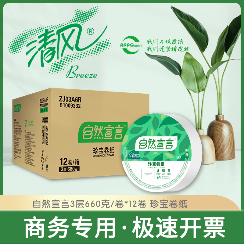 清風(fēng)(APP) ZJ03A6R 自然宣言三層大卷紙 91*120mm*3層*660克 12卷/箱