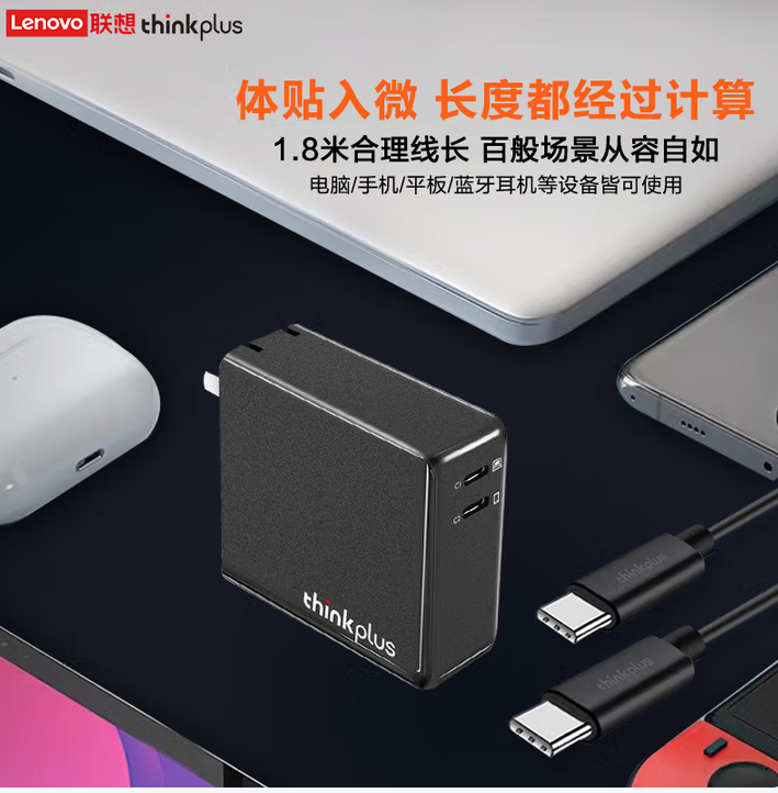 聯(lián)想(Lenovo) 口紅電源適配器 135W氮化鎵充電器雙口Type-C PD快充便攜套裝 筆記本電腦/手機(jī)/平板通用2892
