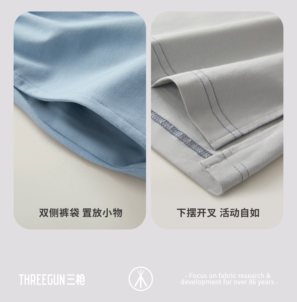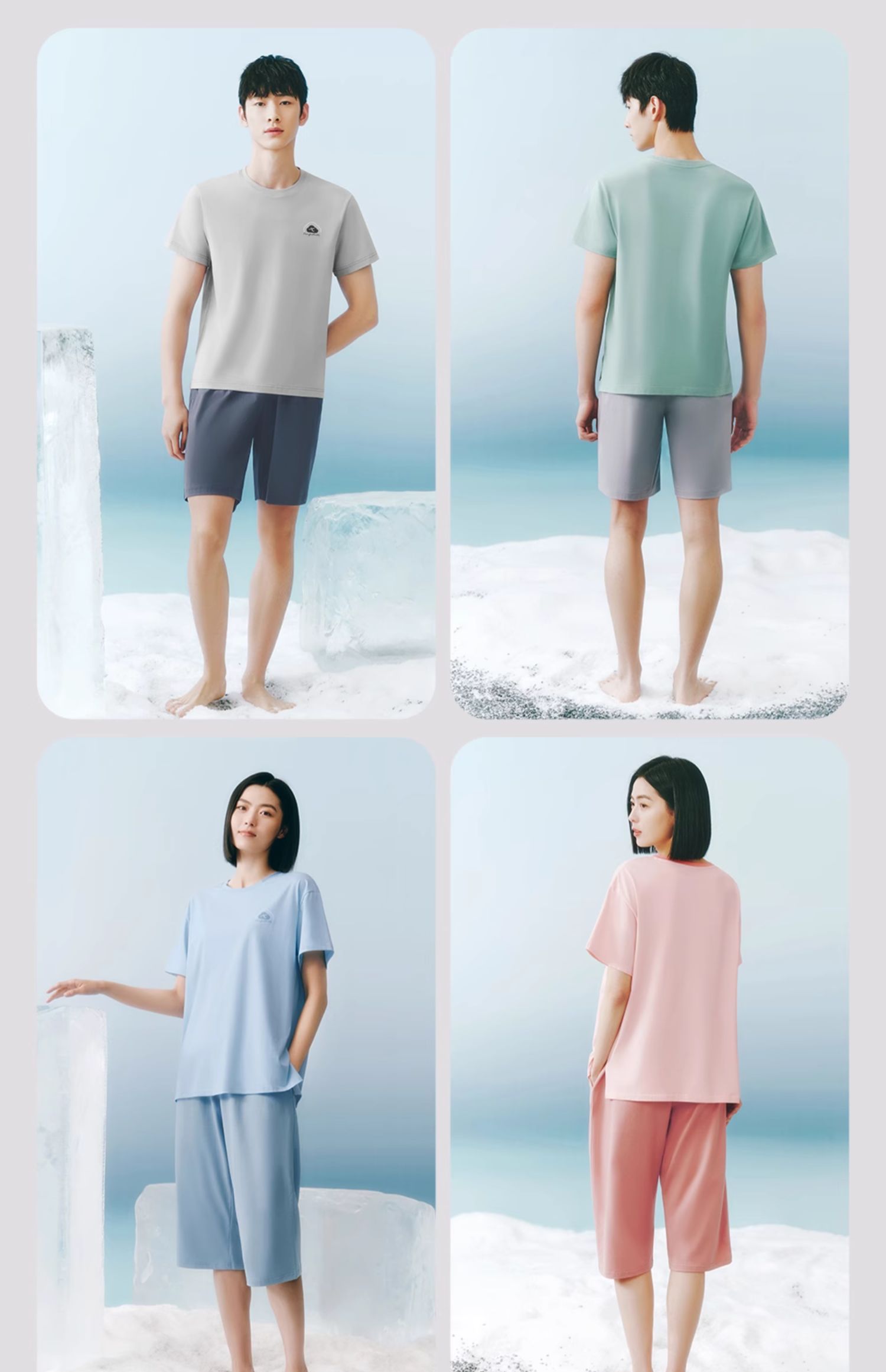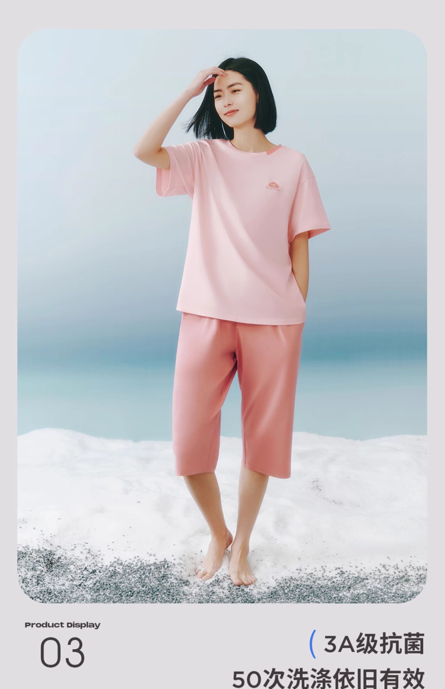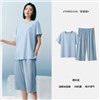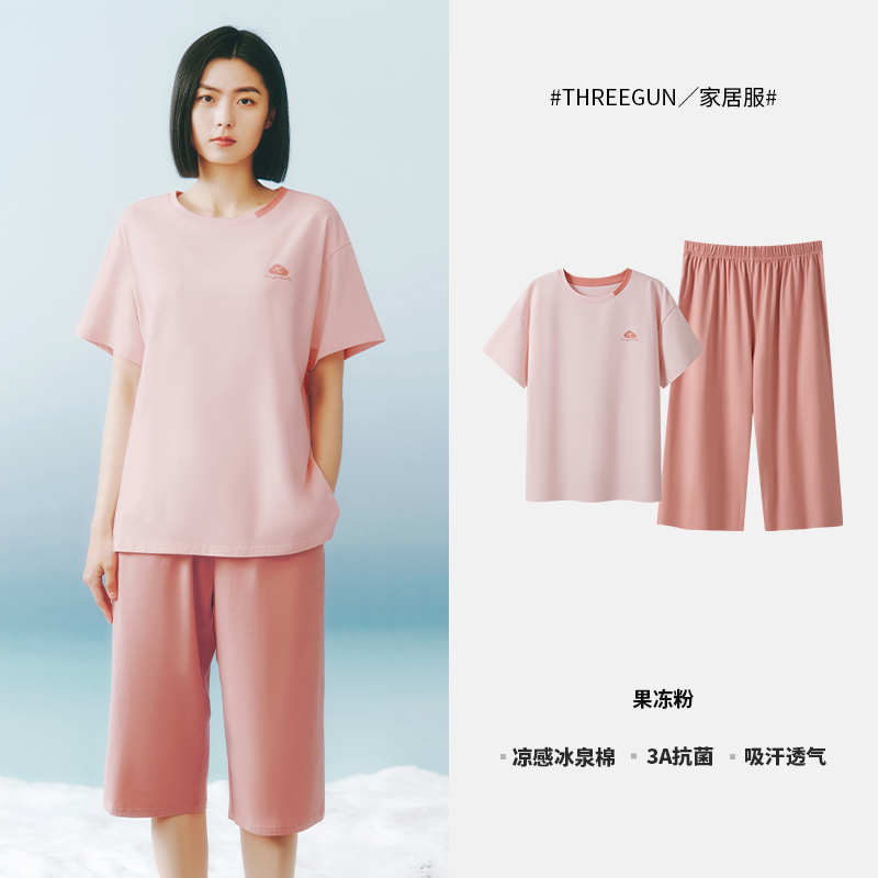 三槍 冰立方 睡衣男夏情侶短袖涼爽抗菌圓領(lǐng)休閑輕薄女家居服套裝(女) (碧水藍(lán)M)
