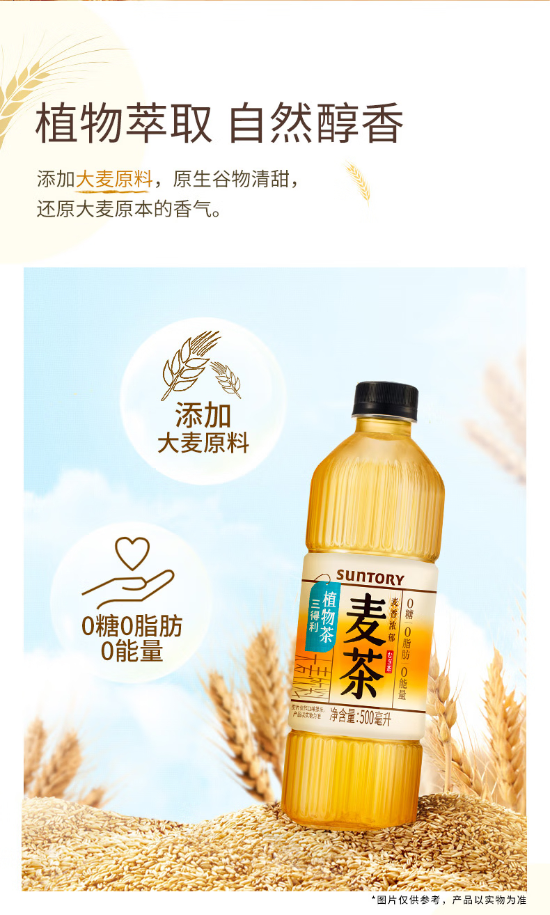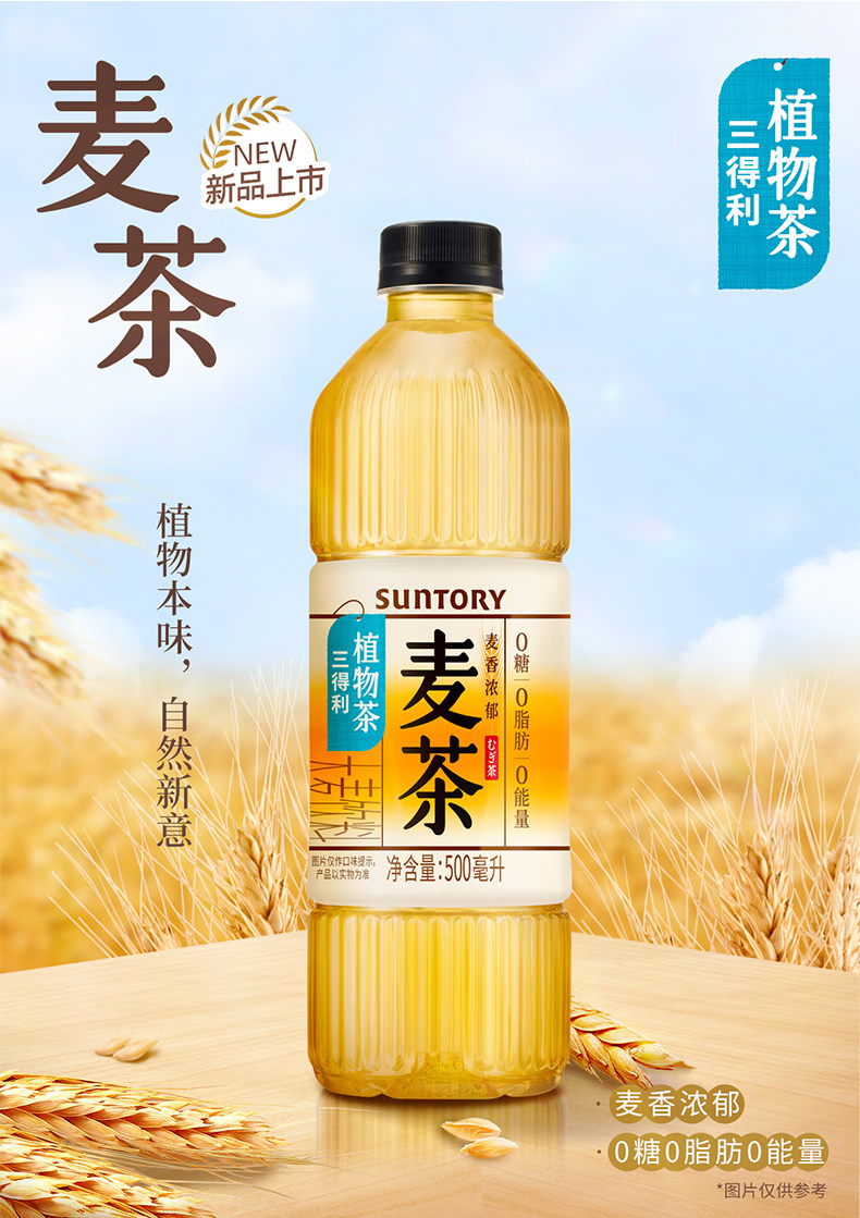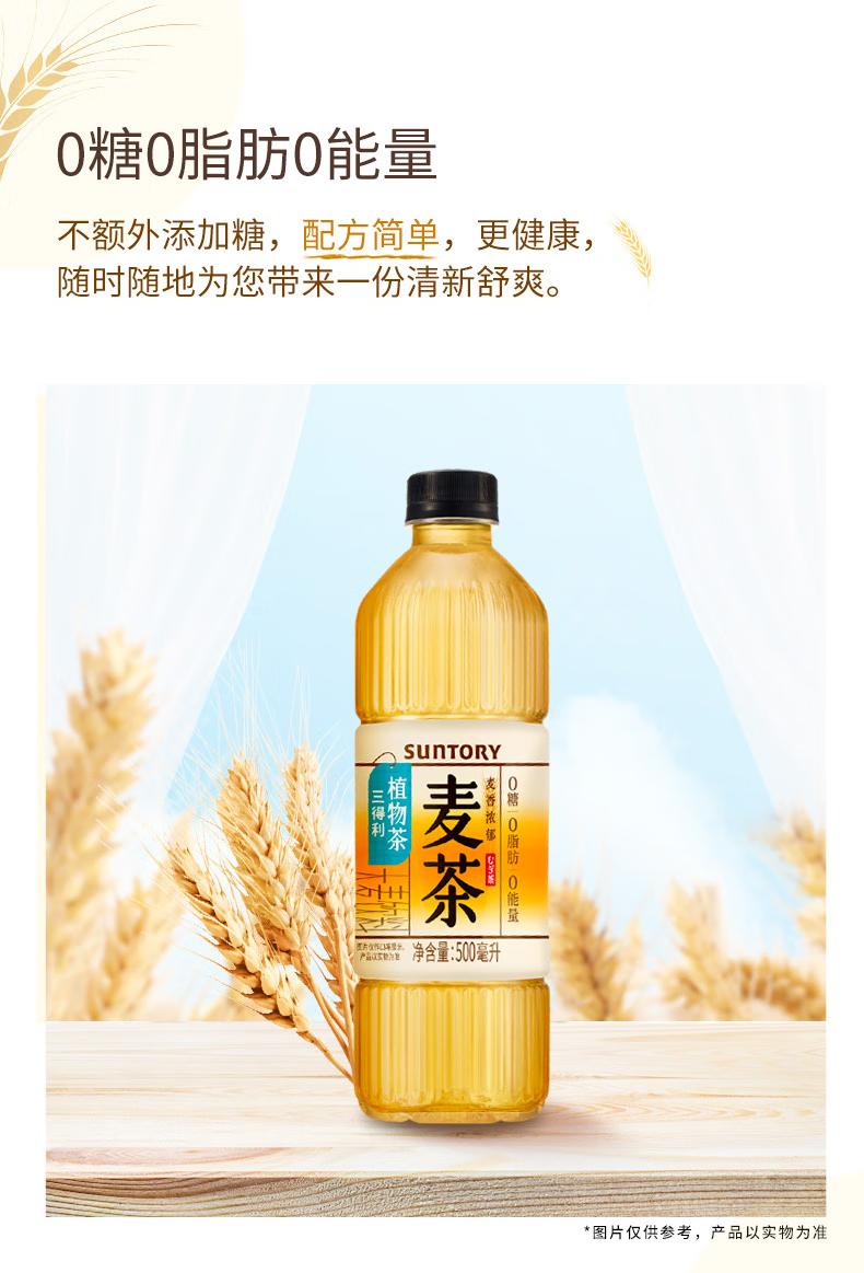 三得利 500ml 大麥茶 0糖0脂0能量 植物茶麥茶飲料 500ml*15瓶 整箱裝