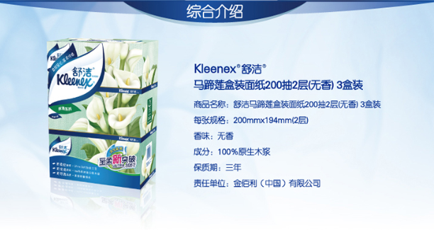 舒潔 (Kleenex)2312-02馬蹄蓮盒裝面巾紙-200抽(大幅)
