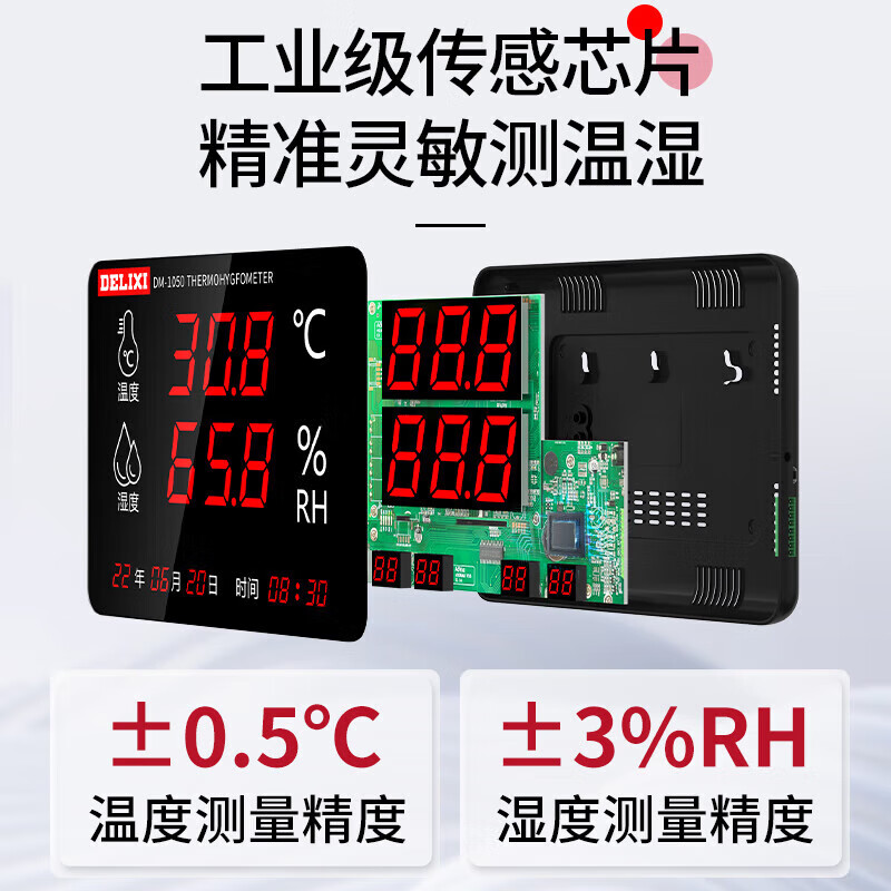 德力西 1050 工業(yè)級室內(nèi)溫濕度計(jì)大屏幕電子高精度壁掛式溫濕度顯示儀超溫報(bào)警
