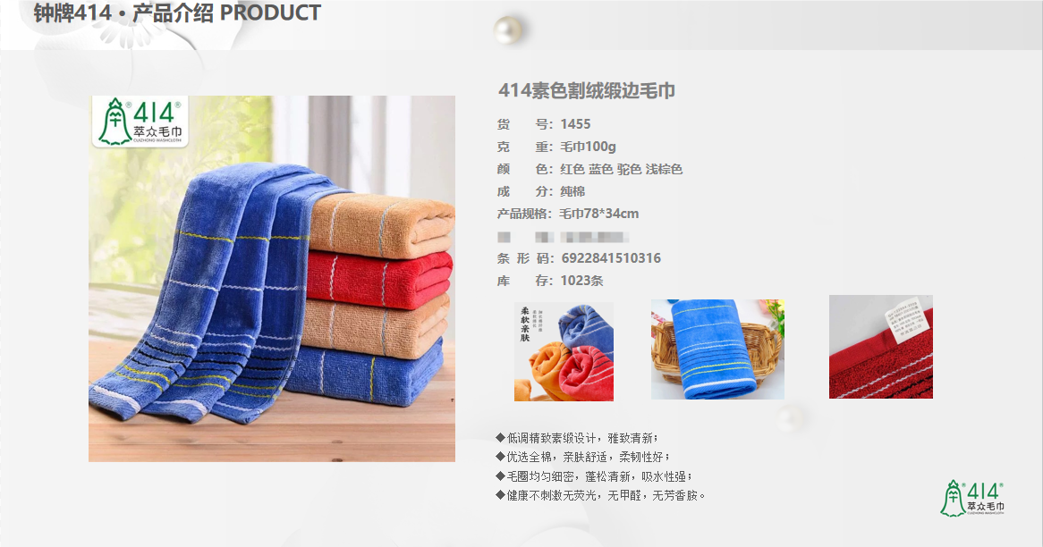 國產(chǎn) 414素色割絨緞邊毛巾 貨號(hào):1455 78*34cm 100g