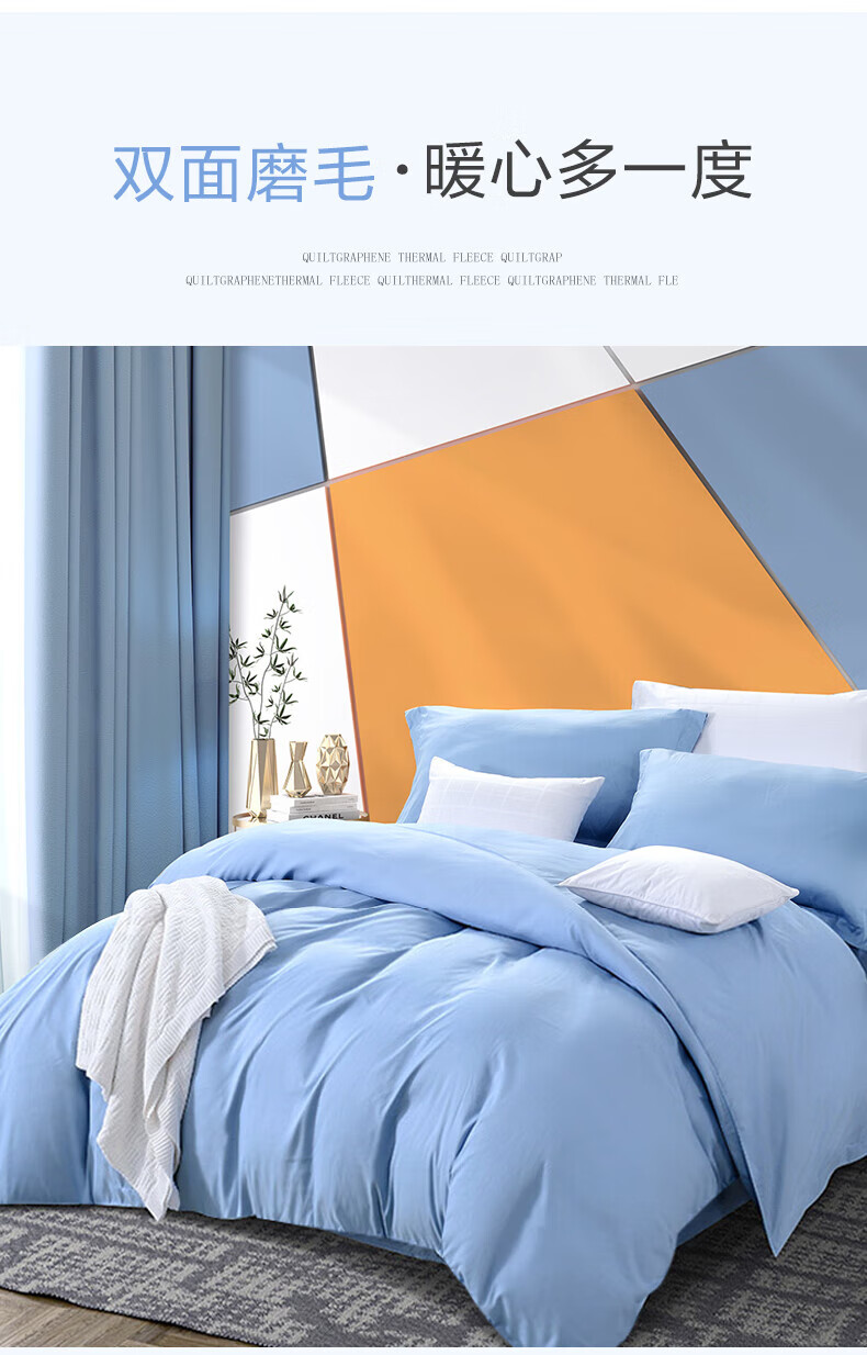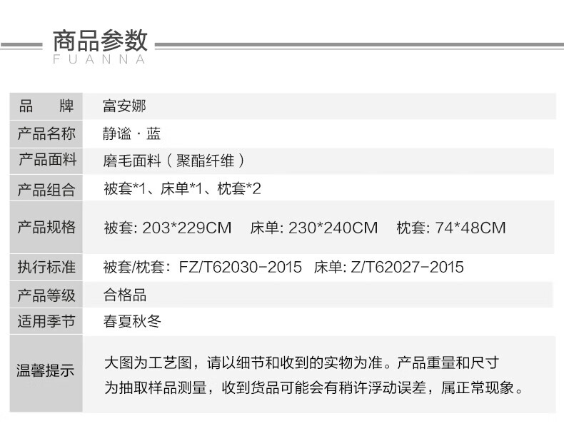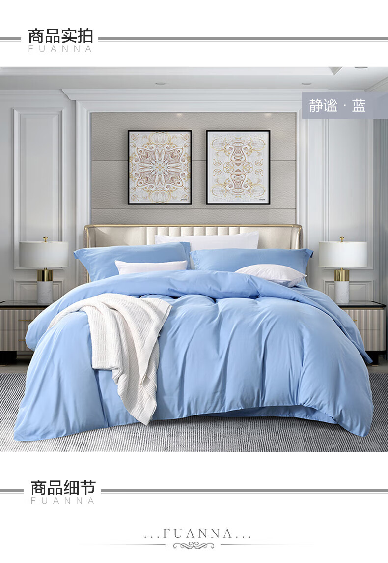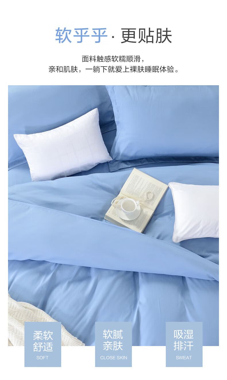 富安娜 磨毛純色四件套 靜謐·藍