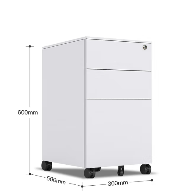 洛克菲勒 鋼制文件活動柜三抽屜柜 辦公儲物矮柜移動鐵皮柜子帶鎖 側拉*白色300寬