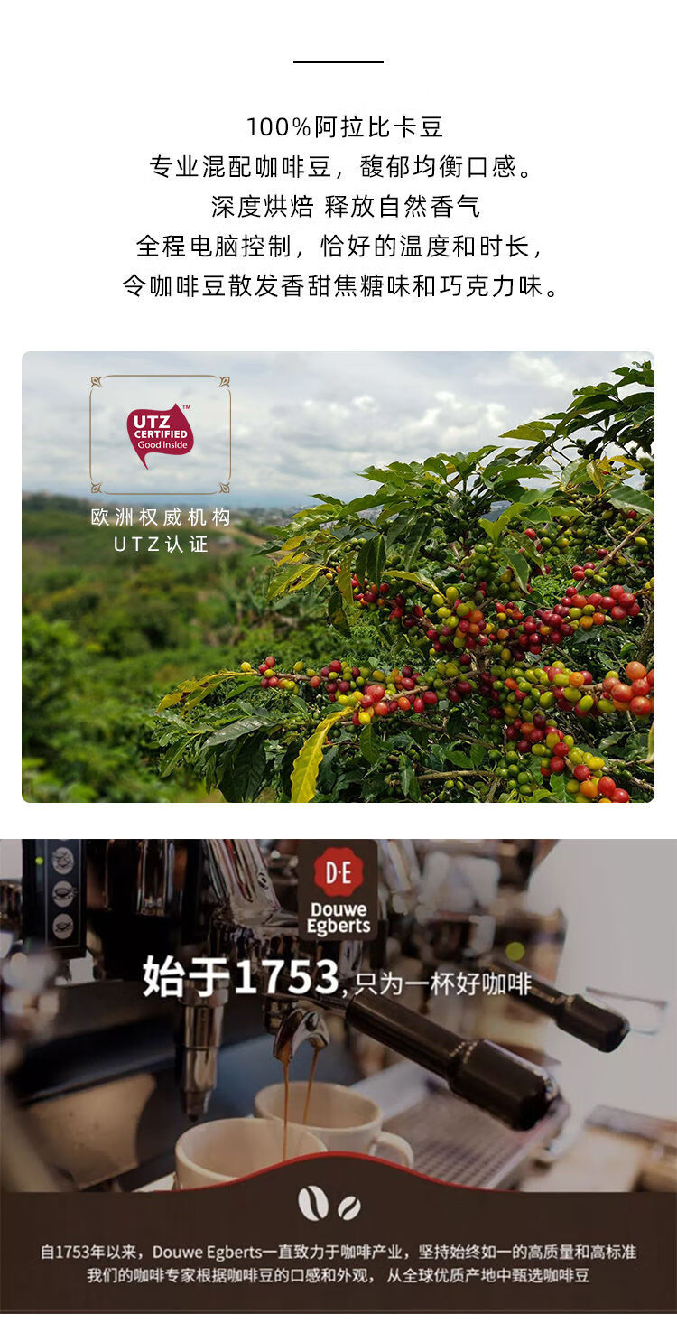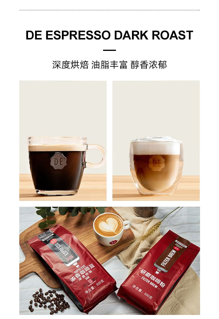 帝怡(D·E) 100%阿拉卡比咖啡豆?jié)庀闵疃群姹阂馐浆F(xiàn)磨純黑咖啡豆500g/袋